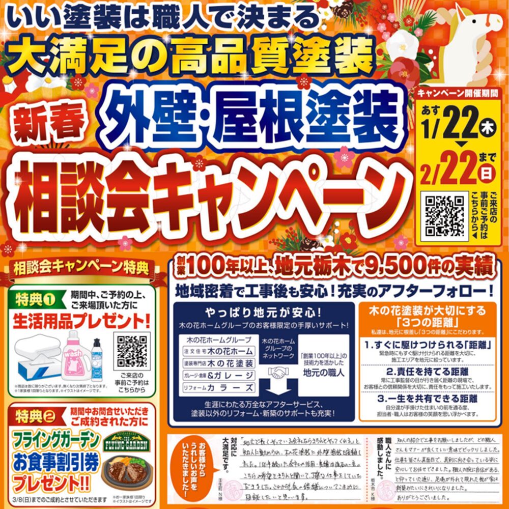 新築も手掛ける木の花ホームグループだからこそ、塗装だけでなく、住まいに関わるお悩み・ご相談には何でも対応いたします。