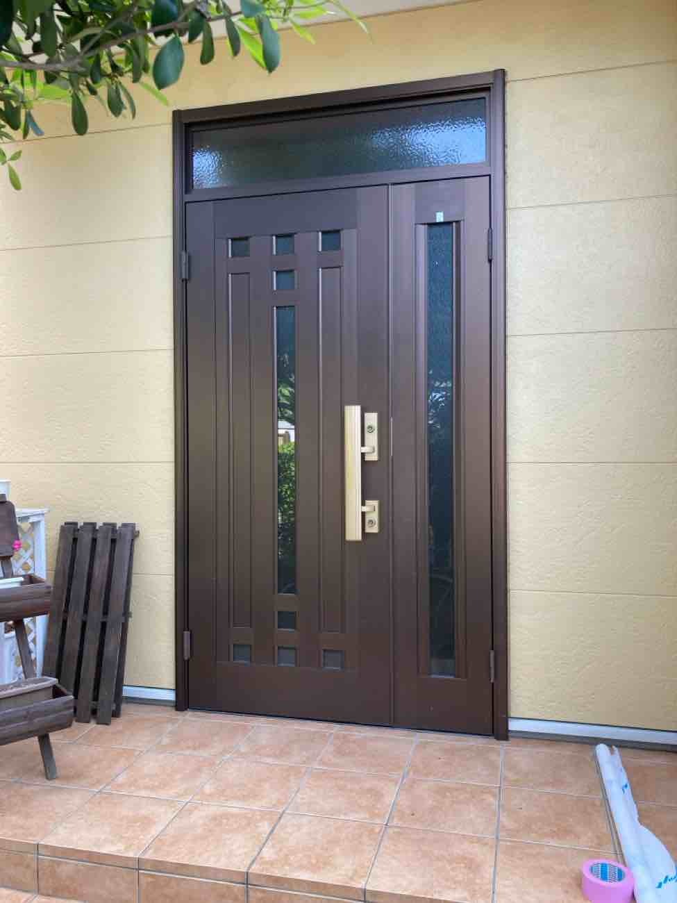 以前の落ち着いたブラウンのドアから、温かみのある木目調へ変わり、外壁の優しい色合いとさらにマッチしています。