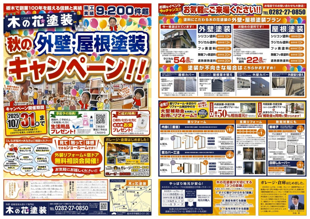 木の花塗装栃木店では、10/31までキャンペーンを開催しております。