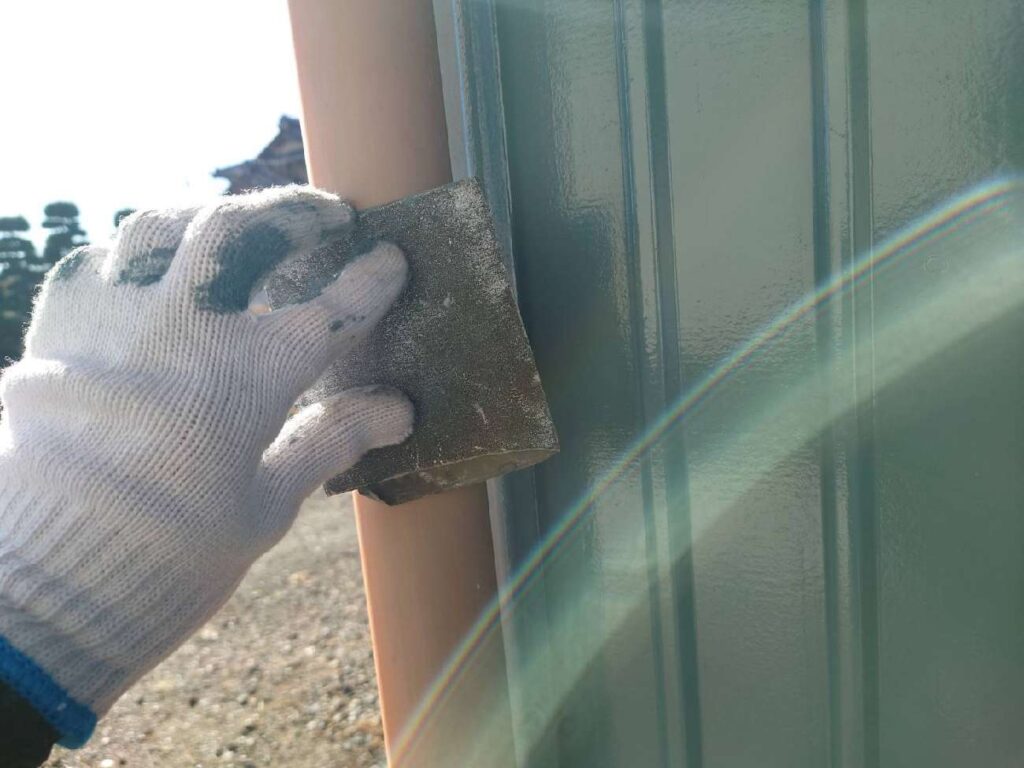 外壁にケレンをかけ、古い塗料や汚れを落とします。