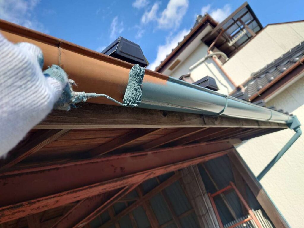 雨樋にもケレンをかけ、外壁と同色で仕上げます。
