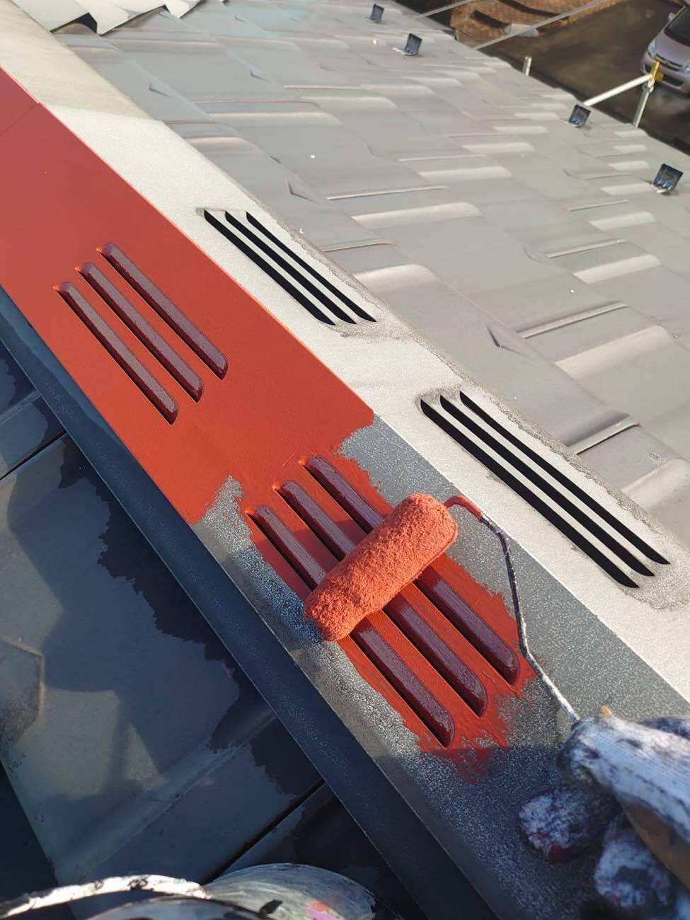 メインとなる外壁部分は、ローラーを使って丁寧に