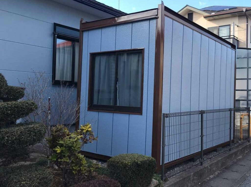 長年の紫外線で色あせが見られた外壁を、空に映える清涼感のあるブルーへ塗り替えました。
